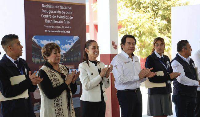 Zumpango, Estado de México, 13 de noviembre de 2025.-La Presidenta Claudia Sheinbaum Pardo, inauguró la obra de reconversión del nuevo Centro de Estudios de Bachillerato (CEB) 9/16, como parte de su compromiso para abrir 100 mil nuevos espacios de Educación Media Superior durante el sexenio y con ello garantizar que las y los jóvenes estudien la preparatoria cerca de su casa.