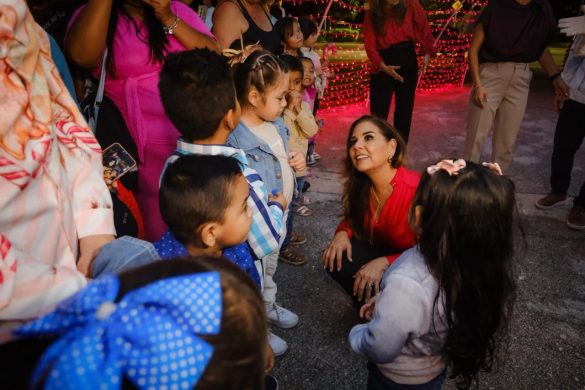 La gobernadora de Quintana Roo saludó a las niñas y niños que se reunieron en la Villa Navideña que se colocó a la altura del asta bandera. Se instaló un túnel de luces, escenario ideal para que habitantes y turistas puedan tomarse fotografías.