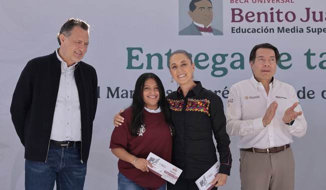 “Nosotros estamos cumpliendo el sueño de ustedes también, de que todas y todos los jóvenes vayan a la preparatoria”, afirmó la Jefa del Ejecutivo Federal