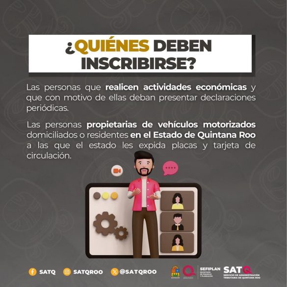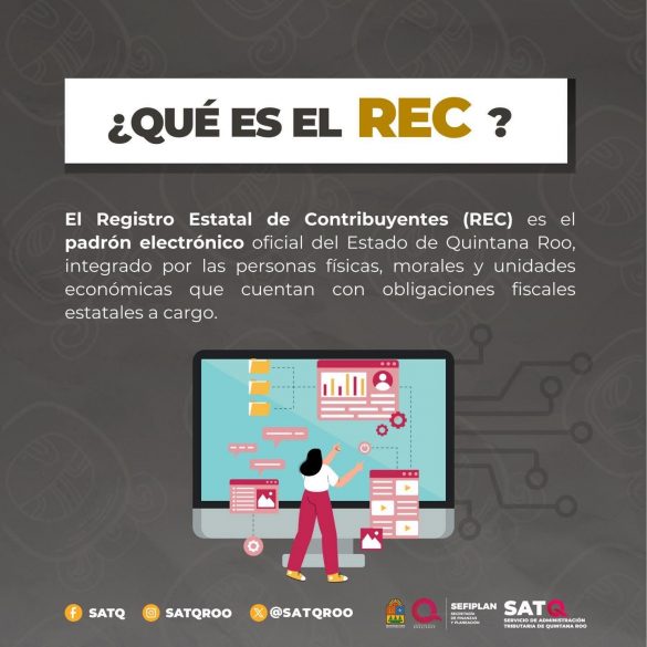 De manera complementaria, el Registro Estatal de Contribuyentes (REC) es el padrón electrónico administrado por el SATQ que identifica a las personas físicas y morales que mantienen obligaciones fiscales y vehiculares en el Estado de Quintana Roo. Están obligadas a inscribirse en el REC las personas físicas y morales que realicen actividades económicas y presenten declaraciones periódicas ante el SATQ, así como las personas físicas sin actividad empresarial que sean propietarias de vehículos con placas y tarjeta de circulación en la entidad.