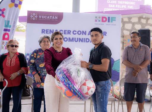 San Felipe, Yucatán,30 de enero de 2026.-Como parte de las acciones que impulsa el Gobierno del Estado para fortalecer el bienestar comunitario y promover entornos más saludables e inclusivos, el Sistema DIF Yucatán realizó la jornada “Renacer con Amor en Comunidad” en la Escuela Primaria “José María Morelos y Pavón”, en el municipio de San Felipe, donde se entregaron apoyos deportivos y aparatos funcionales a beneficiarias y beneficiarios de la localidad.