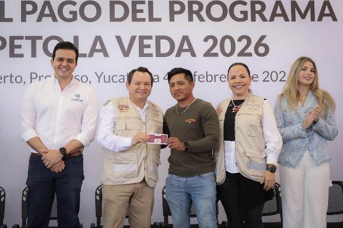 Progreso, Yucatán,4 de febrero de 2026.-El Gobernador Joaquín Díaz Mena inició la entrega del programa Respeto la Veda 2026, mediante el cual más de 12 mil 790 pescadoras y pescadores de Yucatán reciben un apoyo económico de 6,600 pesos, con el objetivo de fortalecer el ingreso de sus familias durante el periodo de suspensión temporal de la actividad pesquera.