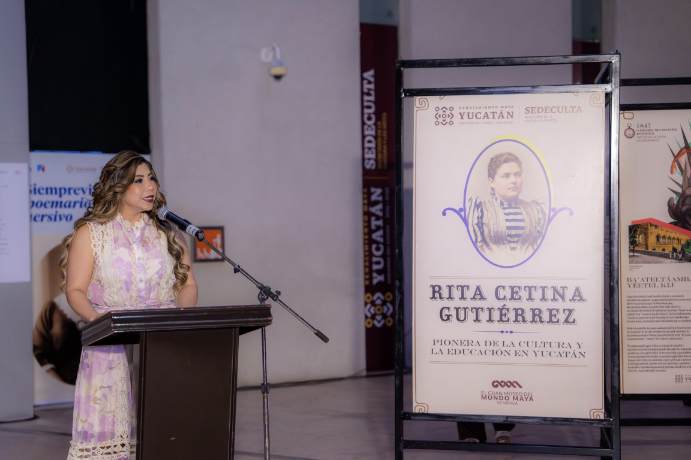 El Gran Museo del Mundo Maya es sede de esta exposición, que permanecerá abierta de forma gratuita al público hasta el 8 de mayo, y en la que dialogan una interpretación artística, lúdica y multimedia impulsada por Fomento Cultural BBVA, con una muestra de documentos y archivos de la Biblioteca Yucatanense de Sedeculta, que permite recorrer la trayectoria de Rita Cetina y su aportación a la lucha feminista en Yucatán.