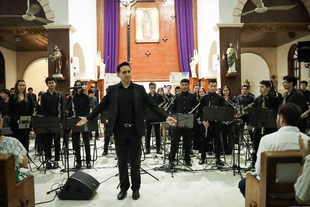 Bajo la batuta del maestro Jesús Castañeda Pérez, los instrumentos de viento y percusión tejieron un puente entre siglos. Desde los matices dorados del Otoño de Vivaldi hasta la elegancia nocturna de Mozart, culminando en la energía vibrante del Mambo Beethoven, la agrupación demostró que la disciplina y el arte son el lenguaje universal de la esperanza.